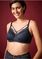 80% taaskasutatud polüamiidi, 20% elastaani. Pits: 88% polüamiidi, 12% elastaani. Võrkkangas: 92% polüamiidi, 8% elastaani.